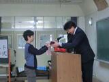 1月21日(水)新体力テスト「特別賞」授与式を行いました。この賞は、富士宮市内小学校Aブロック6年生の中で、1年間の伸び率が一番大きかった学校が表彰されます。代表の6年生が、教育長より賞状とトロフィーを受け取り、お礼の言葉を述べました。これからも体育の授業やスマイル運動などを通して、健康な体と強い心をつくっていきます。