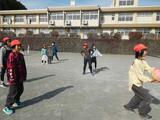 2月17日(火)昼休みに1・2年生が6年生とボールとフリスビーを使って「3面ドッジボール」をして遊びました。1・2年生の投げたボールやフリスビーが6年生に当たると歓声が上がっていました。